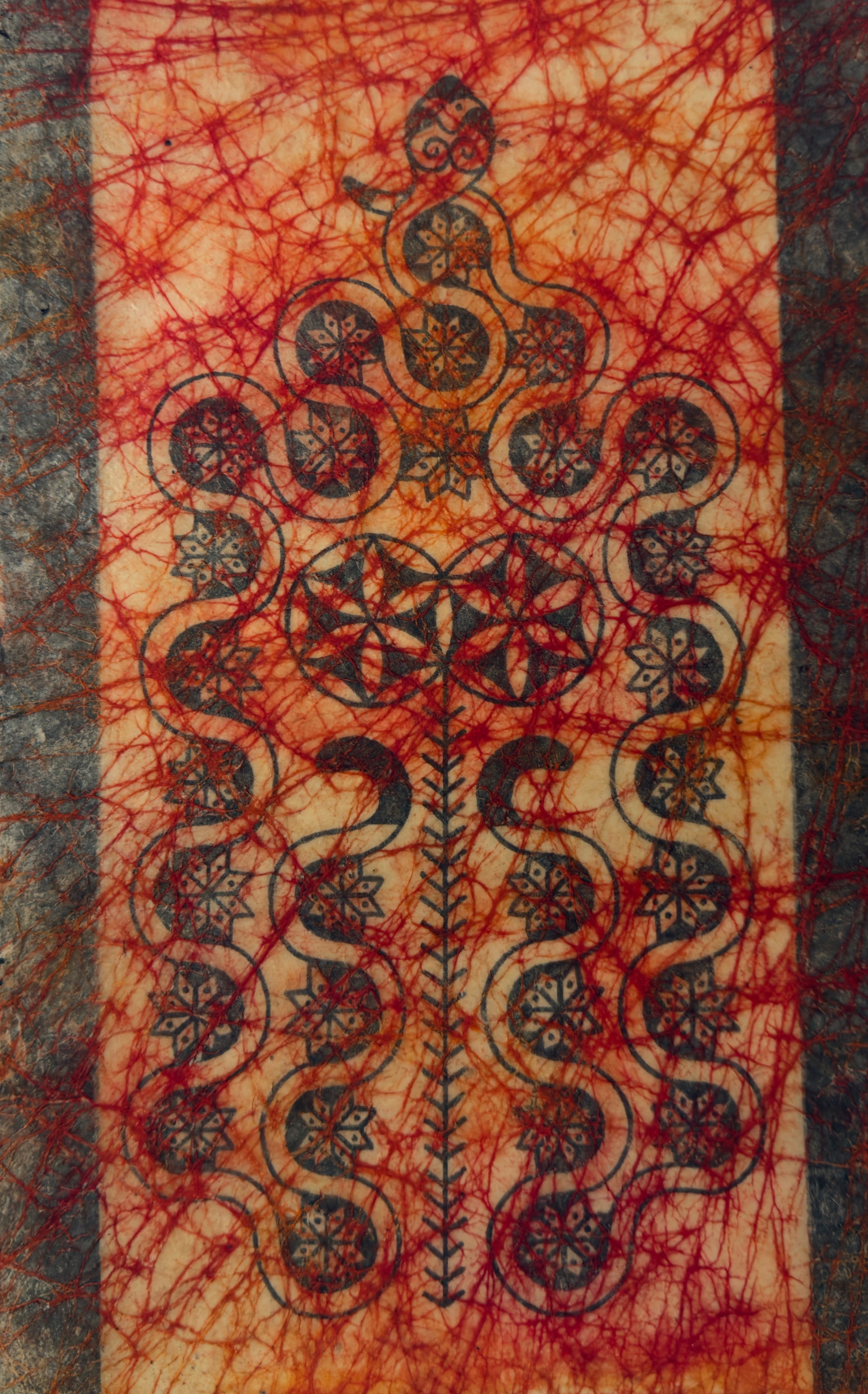 acrylic and ink on bleed wax handmade paper, unframed